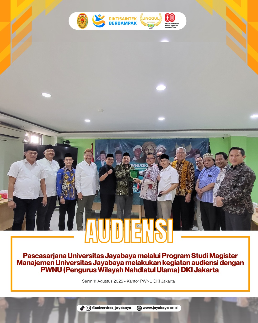 Audiensi ini menjadi langkah awal yang positif dalam membangun kerja sama berkelanjutan antara Universitas Jayabaya dan PWNU, berfokus pada peningkatan kualitas pendidikan, pengabdian masyarakat, dan pengembangan sumber daya manusia yang unggul.